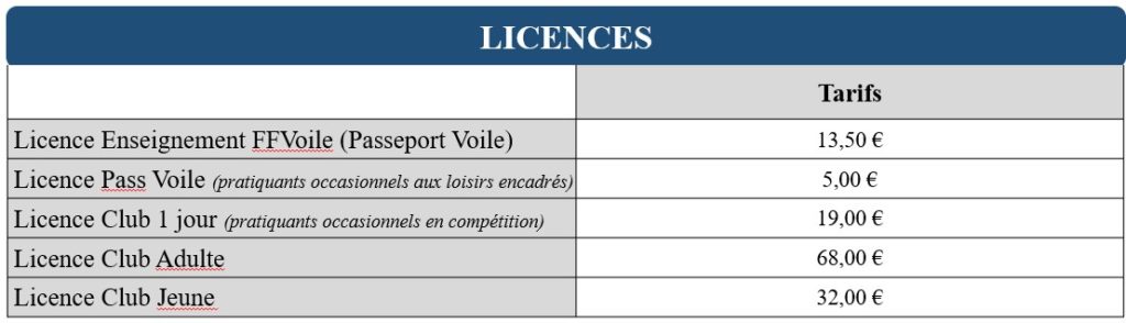 Tarifs Voile Loisir